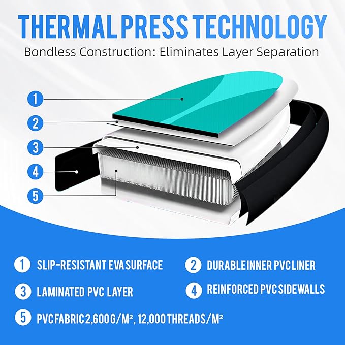 - 【Dual-Reinforced PVC & Barefoot Confidence】Crafted with 2mm-thick lightweight PVC, this inflatable board balances effortless portability with layered puncture protection. The textured EVA deck prevents slips during ocean yoga/fishing.
