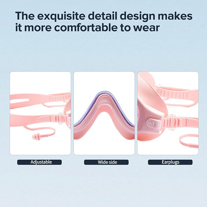 - 【Comfortable to Wear】The easily adjustable straps make the goggles fit better. The ergonomically designed frame reduces the pressure of the goggles on your face and is comfortable to wear for a long time, enjoy the pleasure of swimming