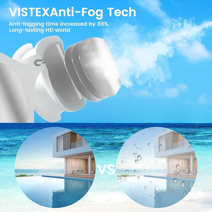 - [VISTEX Anti-Fog Tech]: Our adult swim goggles feature VISTEX Anti-Fog Technology, which increases anti-fogging time by an impressive 89%. With our pool goggles, you can say goodbye to annoying fogging that obscures your vision and hampers your swimming performance. Whether you're swimming in a heated indoor pool or a cold outdoor lake, our adult swim goggles for women will keep your vision crystal clear.