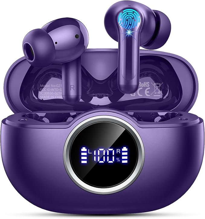 - 【40Hrs Playtime, Real-time LED Power Display】The ear buds wireless can last 6-8 hours playtime from a single charge and provides extra 36 hours playtime with charging case. Dual LED battery display design, You can precisely control the power status of the charging box(0-100%)and each wireless ear bud when in charging. Equipped with USB-C cable offers you more quick and stable charging. Ensure that you always know the remaining battery level and enjoy uninterrupted music experience during long journeys or busy workdays.