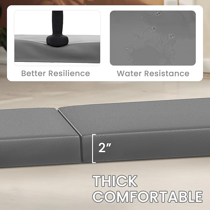 - Hassle-Free Cleaning & Durable: The waterproof, PU-leather finish repels stains and odors—simply wipe with a damp cloth. Reinforced seams and anti-tear edges withstand daily folding, ensuring reliable performance in home gyms or outdoor setups
