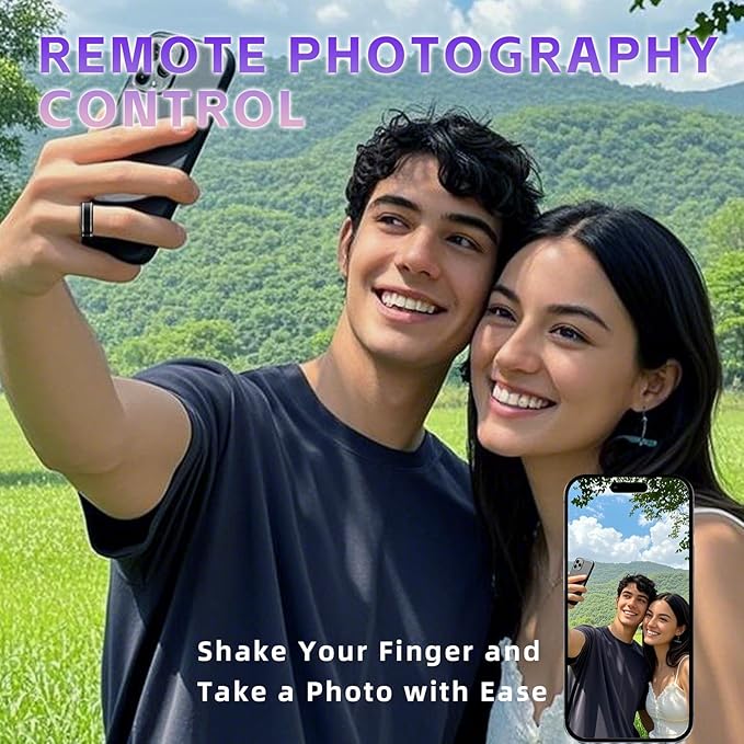 - 【Hands-Free Photography】: Capture every moment with the Anarow smart rings for men. Take photos effortlessly by shaking your finger twice to activate your phone’s camera; perfect for selfies, group shots, and spontaneous moments without extra equipment; enjoy hands-free convenience and capture stunning memories anytime