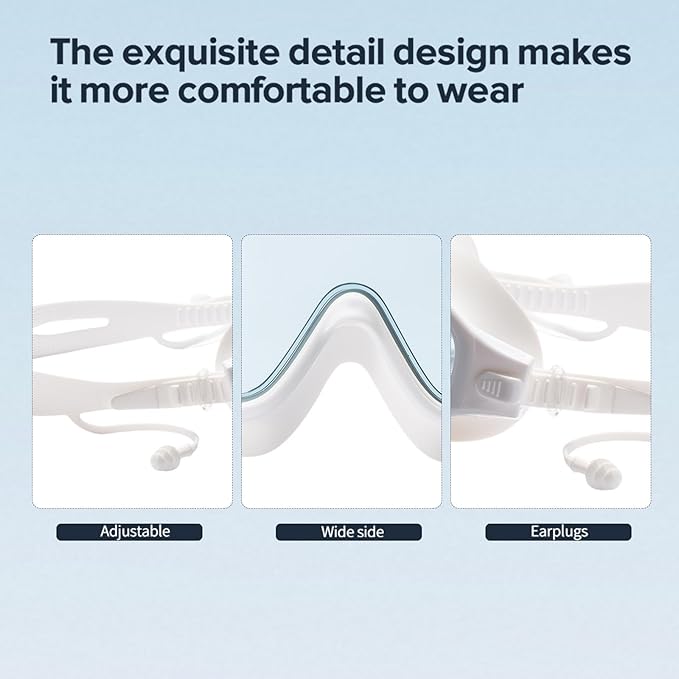 • 【Thoughtful Accessories】Our swim goggles with ear plugs and nose clip, Combining convenience with waterproofing, allowing you to swim more freely in the water