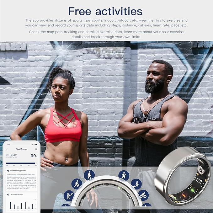 - 💓【Advanced Fitness Monitoring with Smart Ring】- The Smart Ring introduces tailored workout tracking through its dedicated 'Workout Mode,' meticulously observing various activities to provide comprehensive insights into overall workout metrics. By closely monitoring heart rate during exercises, users gain valuable insights into their cardiovascular response, assess intensity levels, and make informed decisions to optimize their fitness outcomes.