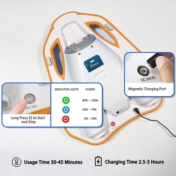 - Large-capacity battery: Electric swimming Pool Float has a built-in 24V/4.6Ah battery, with a comprehensive battery life of up to 45 minutes and a charging time of only 2.5-3 hours.