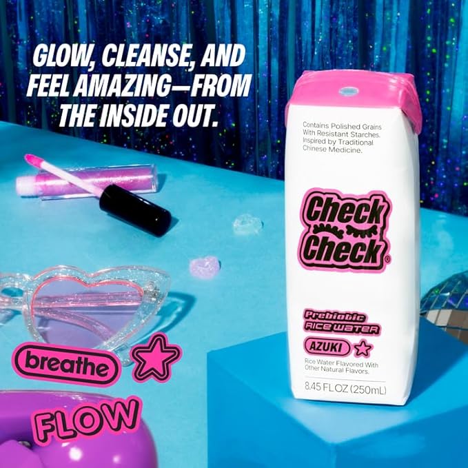 CheckCheck Prebiotic Rice Water, Dawn, Dusk, and Azuki, 12 Pack, 8.45 fl oz Bottles (12 Pack, Azuki)
