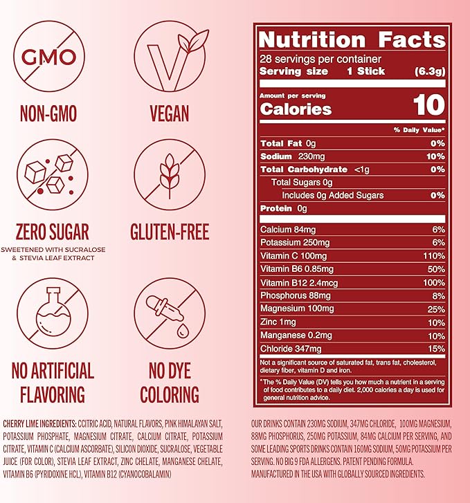 - All the Good Stuff and Zero Sugar: Each stick is filled with 3x electrolytes vs traditional sports drinks - Sodium, Potassium, Magnesium, Vitamin C, Pink Himalayan Salt - all while being Sugar Free, Non-GMO, Allergen Free, Vegan, with No Artificial Preservatives and No Artificial Coloring