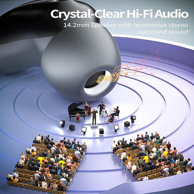 - Bluetooth 5.4 with Instant Auto-Pairing:Featuring the latest Bluetooth 5.4 chipset, the Bluetooth D20 Wireless headphones offers ultra-stable, low-latency connections. Enjoy instant one-step pairing—just open the case and the earbuds automatically connect to your last device. With strong anti-interference capabilities and a wireless range of up to 15 meters, you can move freely around your home or relax in bed without losing audio quality.