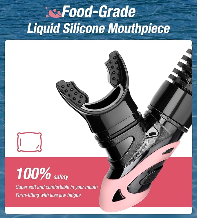 - Advanced top dry valve and splash guard: Aegend Dry snorkel profiled “paddle” dry top automatically closes when submerged, not allowing water entry. Even waves crash overhead, the splash-guard will prevent water from coming into the snorkel. Unlike the float ball valve which gets lodged easily by small sands or kinds of stuff, our new design valve won't be stuck, which give you comfortably breath.