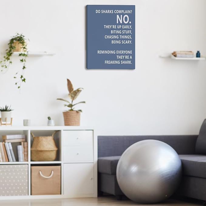 Rusenbao Gym Motivational Workout Wall Art, Home Gym Decor, Inspirational Workout Room Decor, Do Sharks Complain About Monday, Canvas Wall Art for Exercise Fitness Room Office, 11x14 inch(Blue)